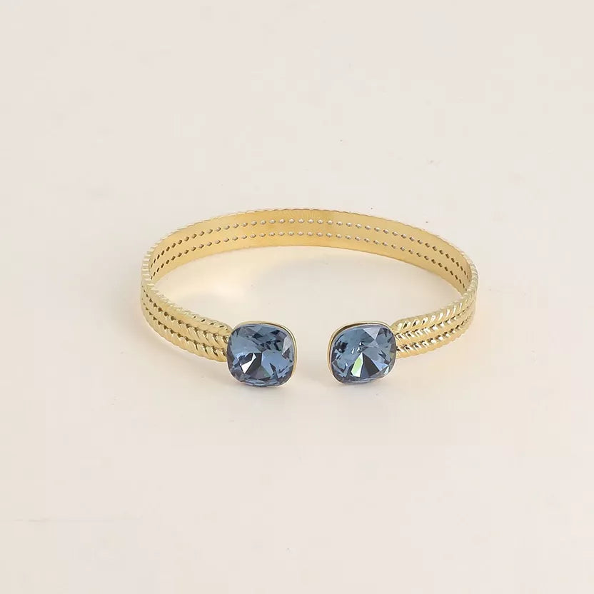 Jonc en acier inoxydable effet tressé orné de deux cristaux de Swarovski®.