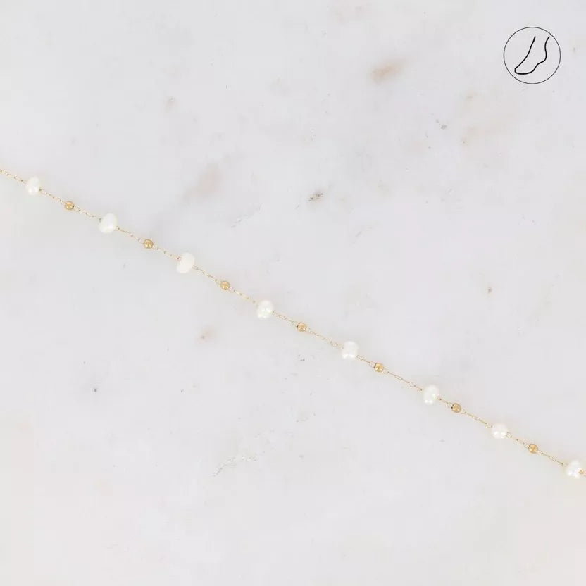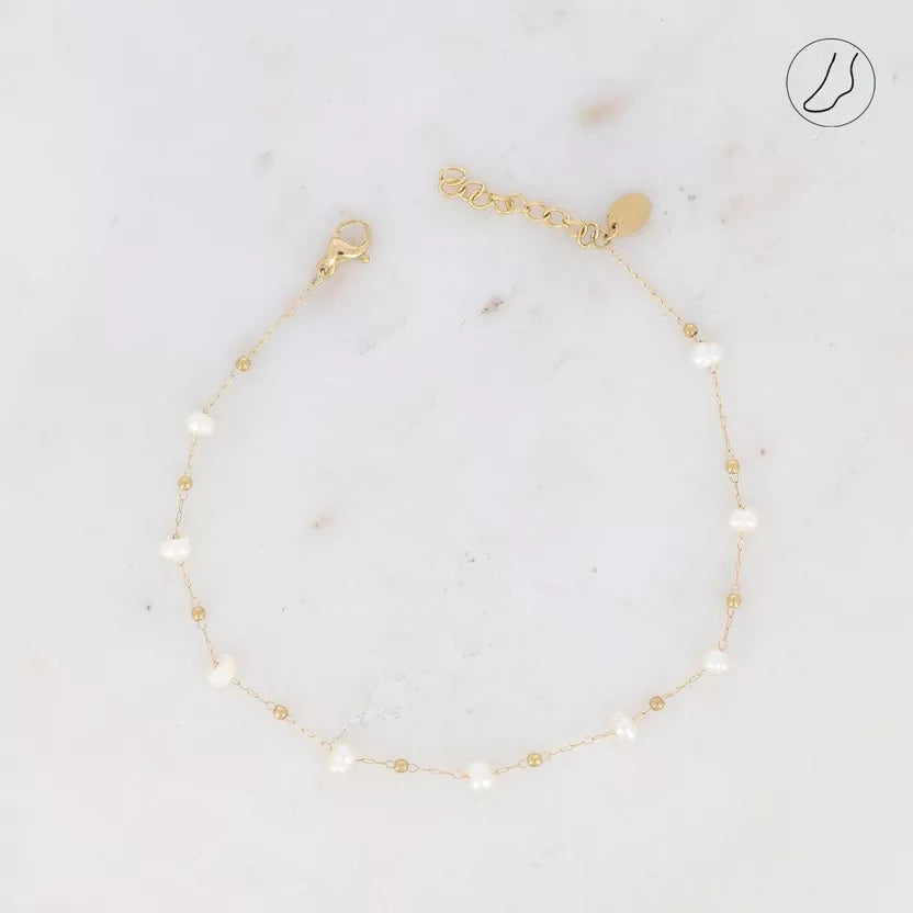 Bracelet de cheville en acier inoxydable composé des perles en acier et aux perles d'eau douce.