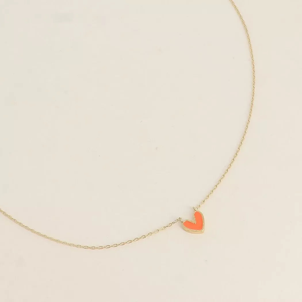 Collier en acier inoxydable composé d'un petit coeur en émail orange.
