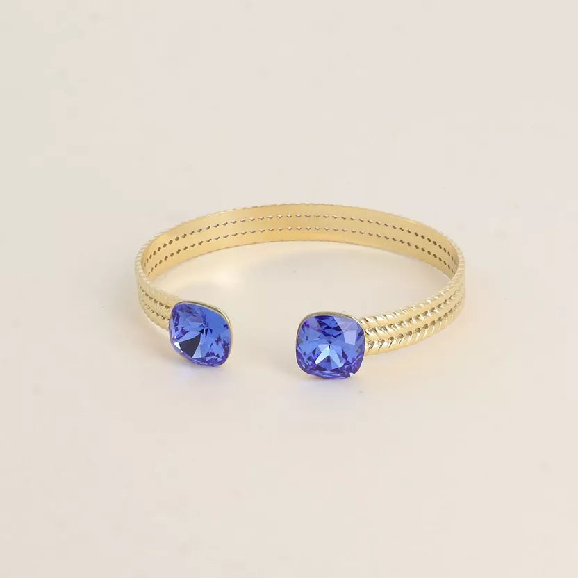 Jonc en acier inoxydable effet tressé orné de deux cristaux de Swarovski®.